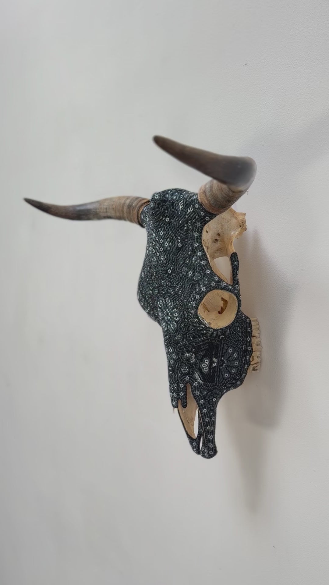 La serie Huichol Cow Skull è un ricordo dei teschi cerimoniali Wixárika, che sono il risultato di celebrazioni tradizionali e di una profonda comprensione del flusso della vita e della morte.